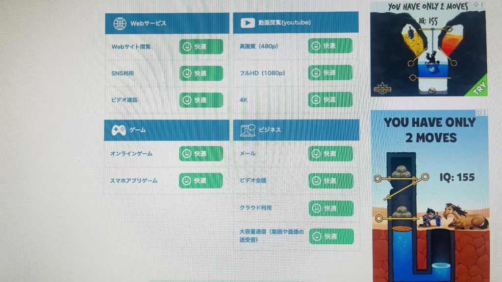 検索結果は、最大で82Mbpsこれだけ出ていれば、快適な環境です、
